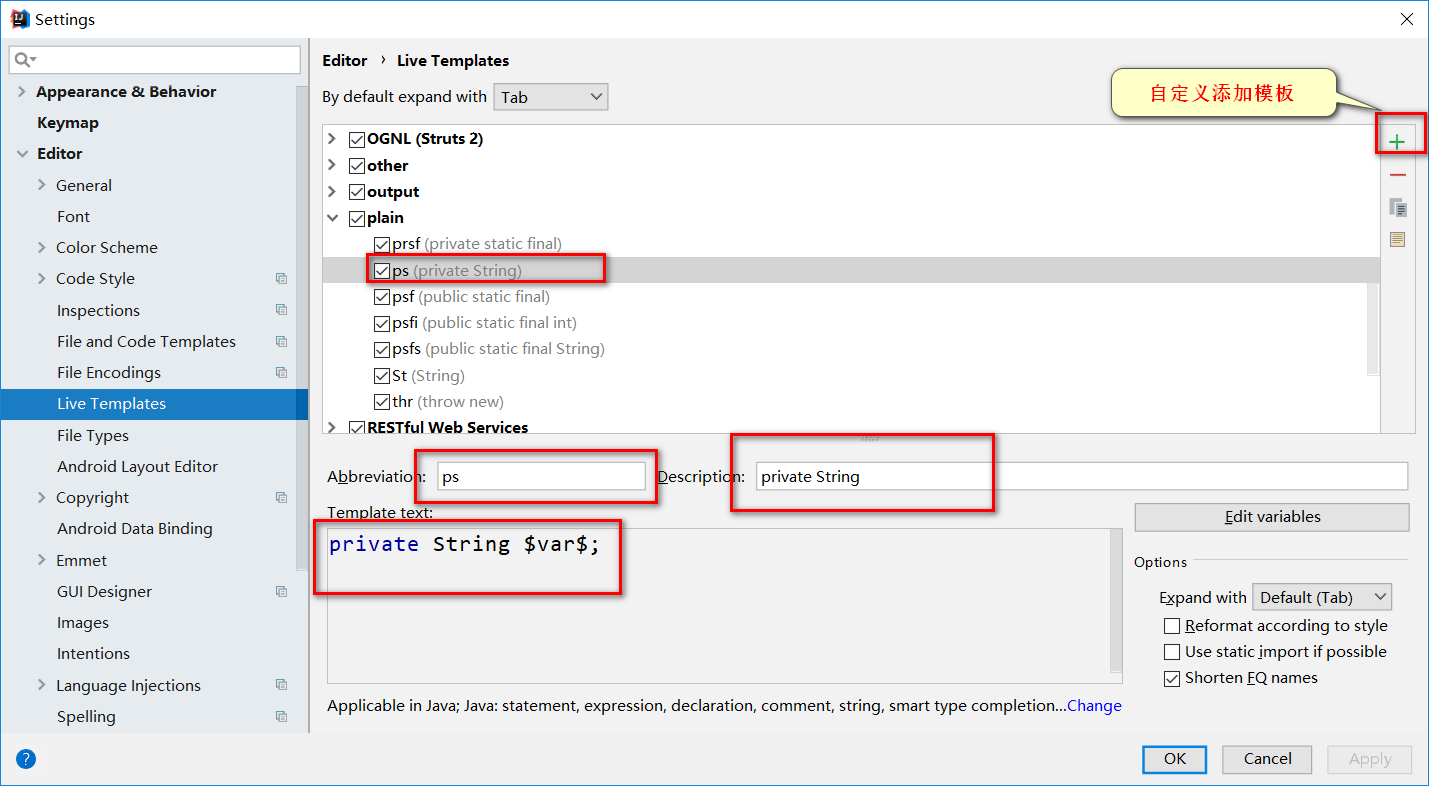 setting-Editor-Live Templates 可以修改