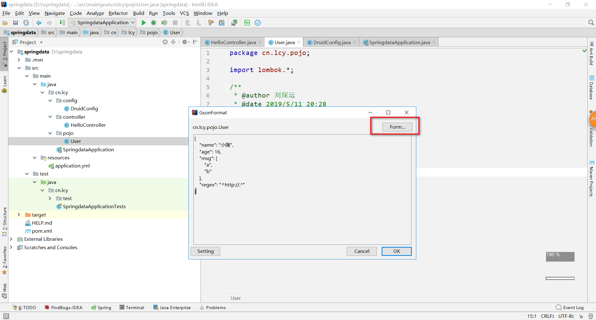 一键根据json文本生成java类 。在类的内部,使用快捷键 alt+s