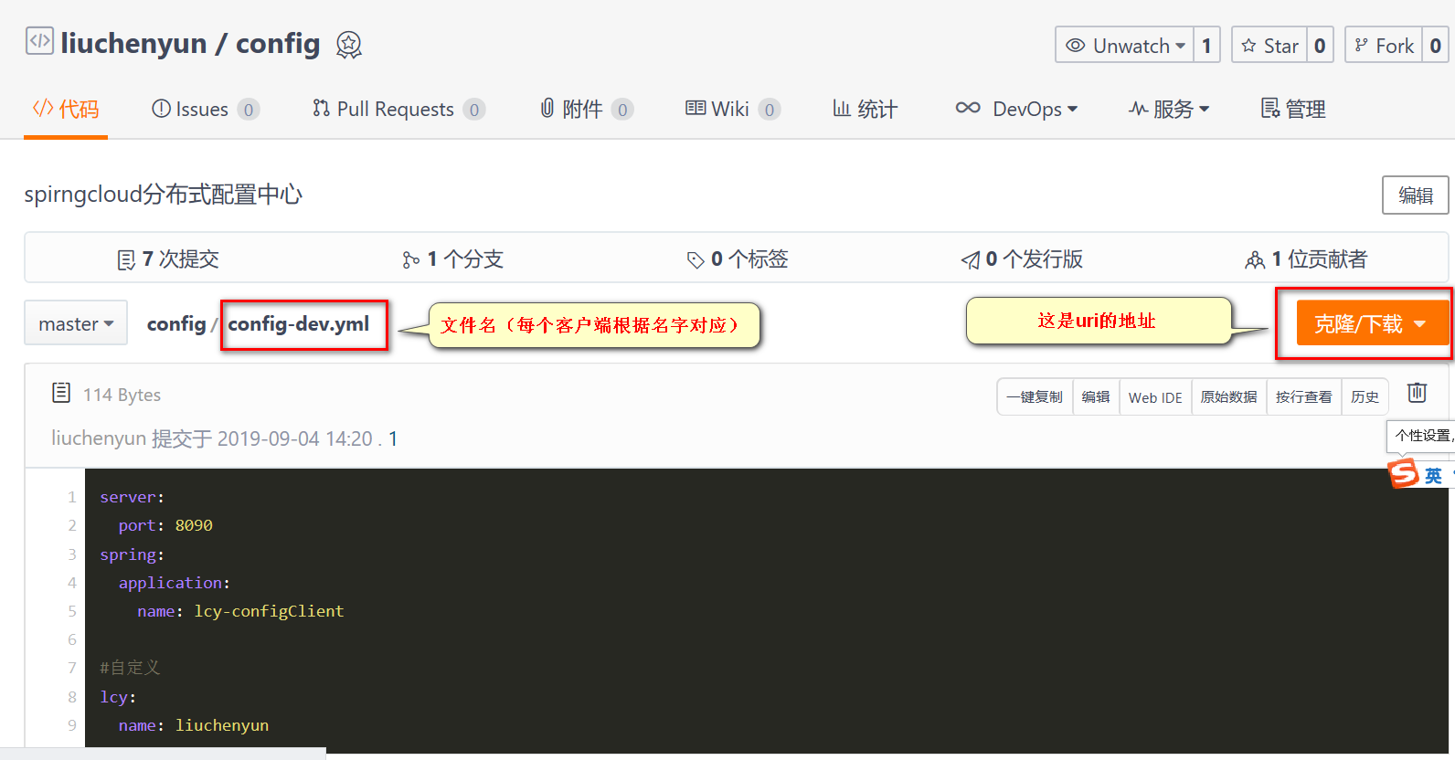 uri: https://gitee.com/liuchenyun/config.git 这个是放在gitee上的文件 如下图: