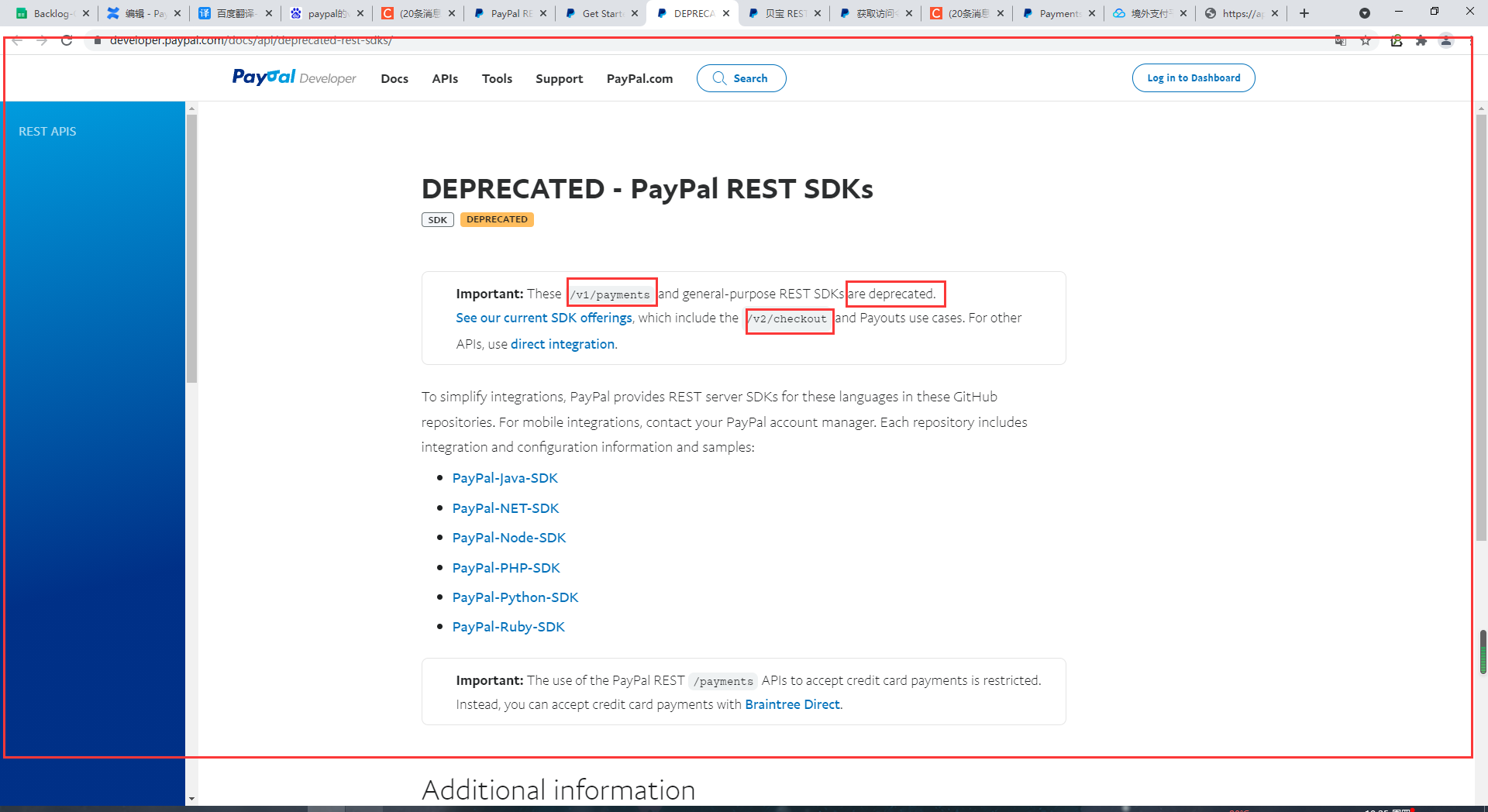 开发者文档:https://developer.paypal.com/docs/api/overview/