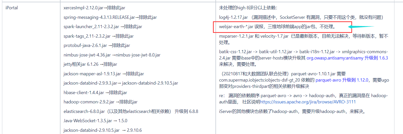 log4j-1.2.17.jar (漏洞描述中,SocketServer 有漏洞,只要不用这个类,就没有问题,等待portal或iserver处理,再同步修改)